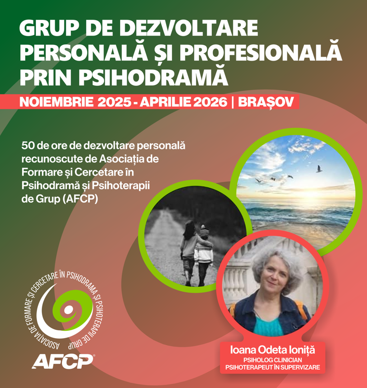 Asociația de Formare și Cercetare în Psihodramă și Psihoterapii de Grup (AFCP)este înființată în 2024 și este acreditată de Colegiul Psihologilor din România.