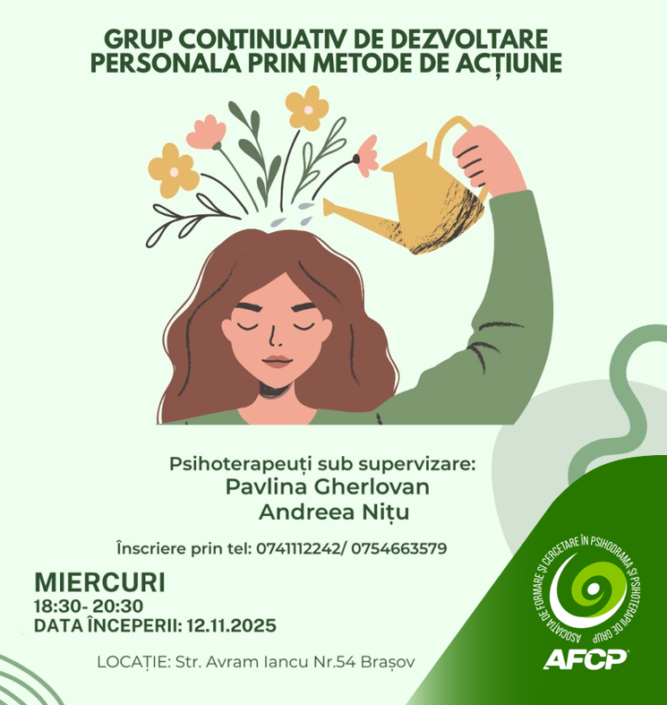 Grup de Dezvoltare Personală și Profesională prin Psihodramă / Perioada Noiembrie 2025 – Aprilie 2026, Brașov.